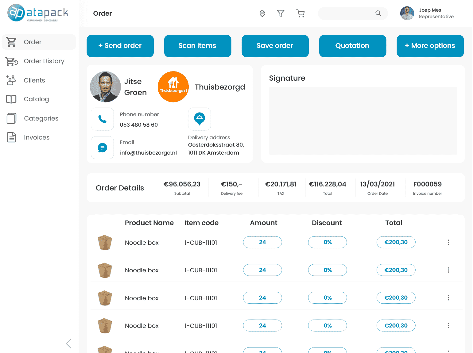 Deze klant benaderde ons met een applicatie die niet voldeed aan zijn wensen. Na een meeting en veel overleg is duidelijk geworden dat deze klant graag een SalesAPP wilde voor zijn vertegenwoordigers. Deze klant verkoopt productverpakkingen en zijn vertegenwoordigers kunnen onmogelijk elk product meenemen.