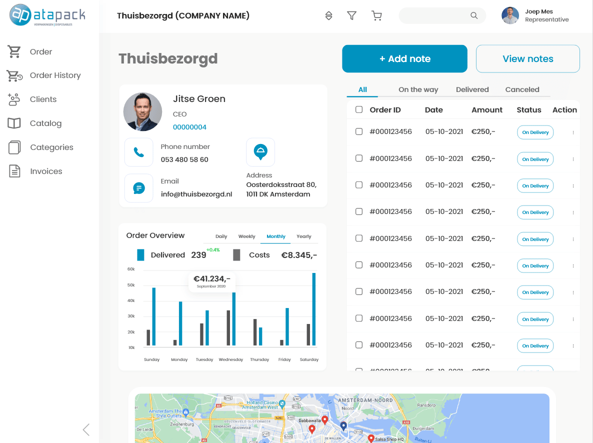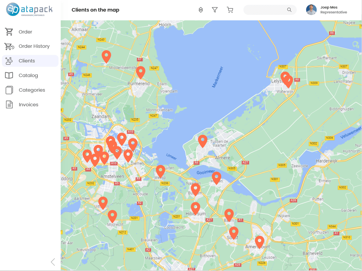 De klantenkaart is een map die de geografische locatie van alle klanten weer geeft. Zo kan een vertegenwoordiger gemakkelijk zien welke klanten bij hem in de buurt zijn.