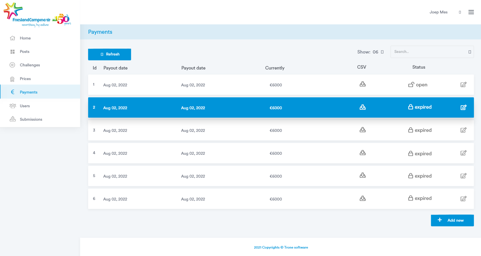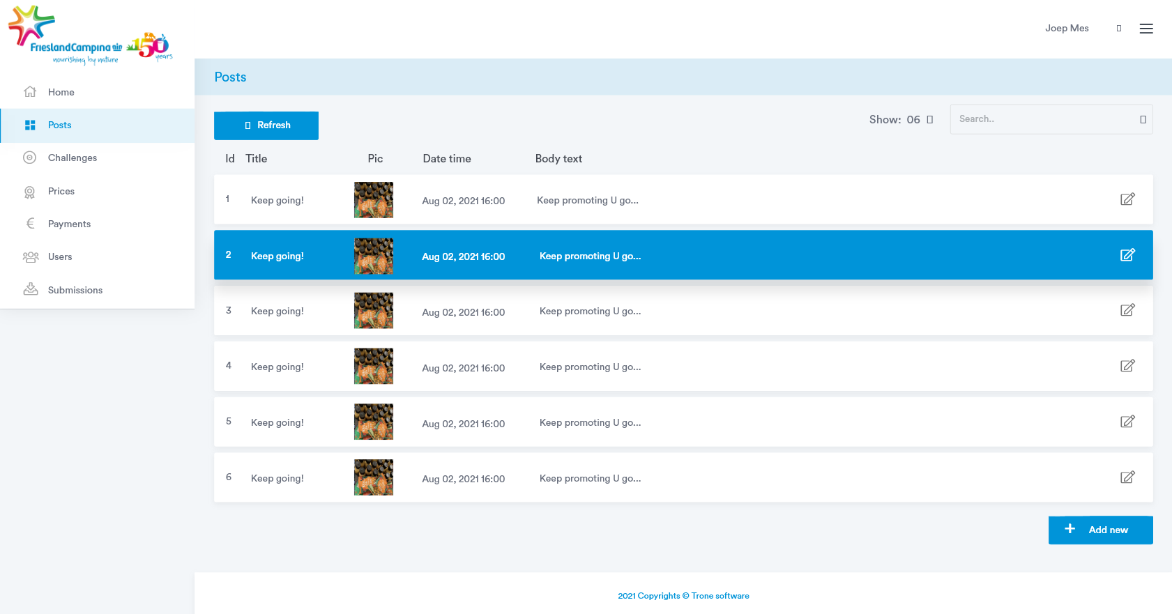 Trone heeft deze webapplicatie volledig intern voor Friesland Campina gedesigned, ontwikkeld en gedeployed.