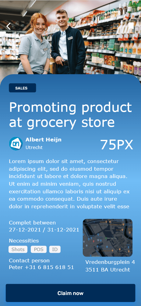 Alle studenten zien in het portaal een overzicht van beschikbare opdrachten. Zij kunnen een opdracht claimen en deze uitvoeren om XP te verdienen.