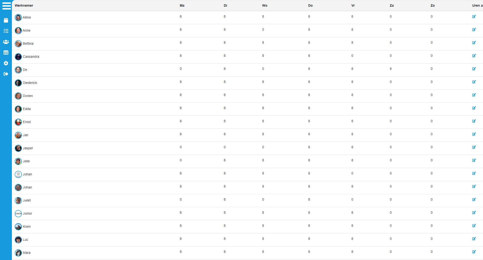 Niet alle medewerkers hebben dezelfde beschikbaarheid. Zo werken sommige medewerkers parttime en sommige medewerkers ook zaterdagen. Daarom geeft elke medewerker zijn/haar rooster aan. Wanneer een teamleider een medewerker op een project plaatst wordt er automatisch rekening gehouden met de beschikbaarheid van de medewerker.