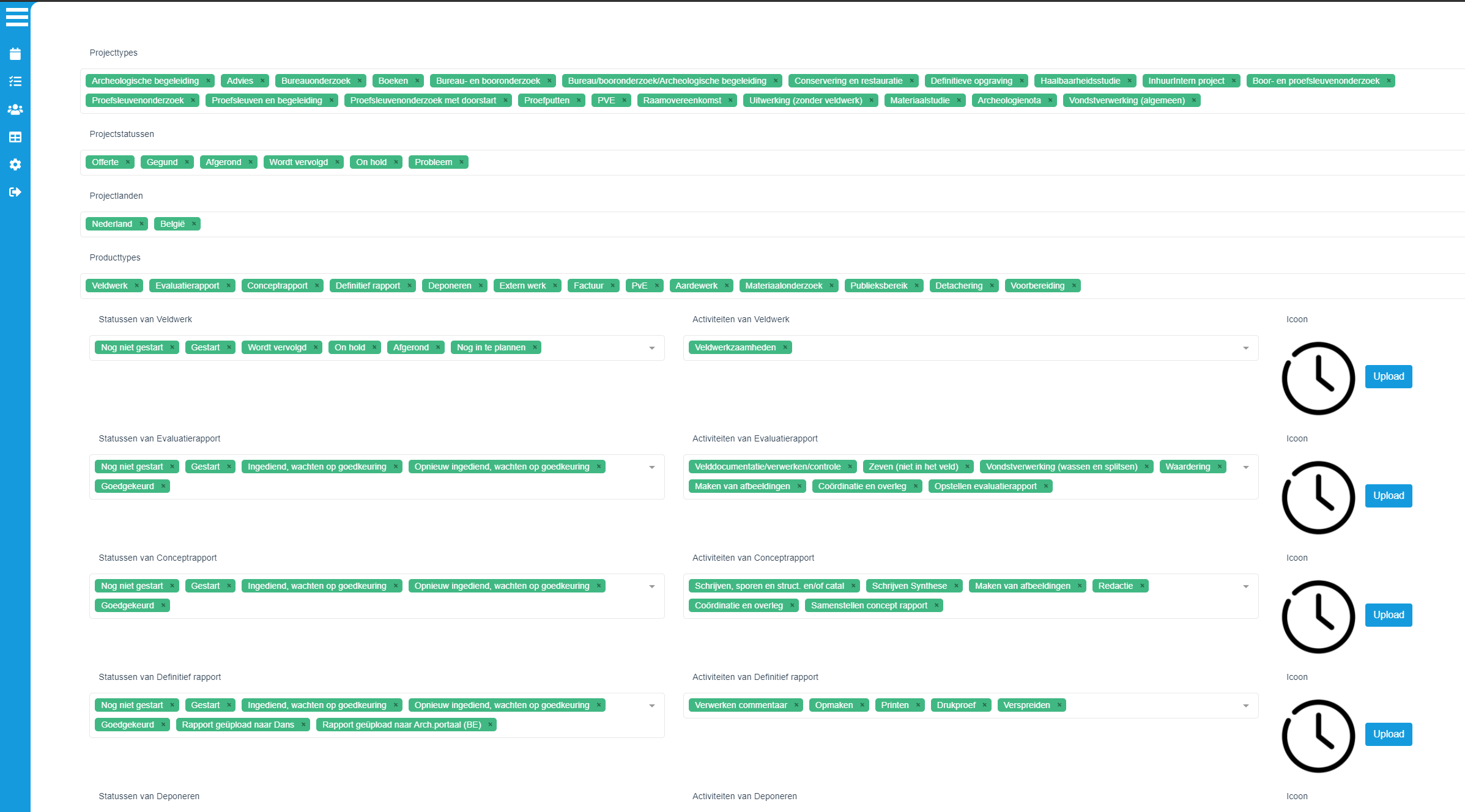 Het systeem kent veel verschillende instellingen. Zo vallen er verschillende statussen voor een project te definiëren, kunnen verschillende icoontjes worden ingesteld, zijn er type gebruikersrollen en veel meer. Alles valt volledig te beheren in de applicatie.