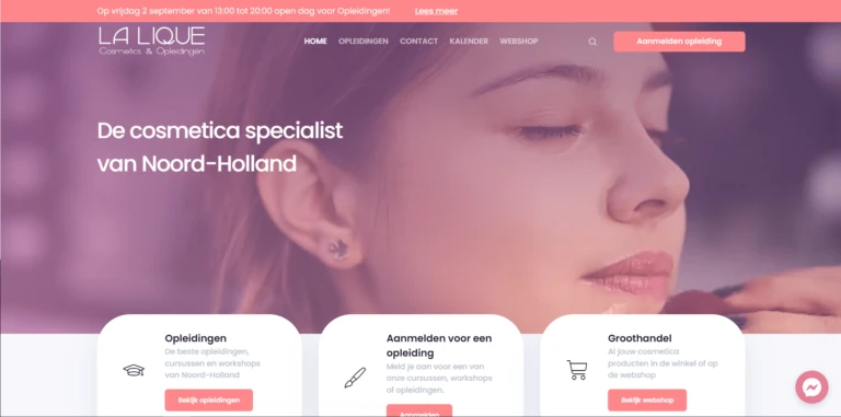 De klant heeft ons carte blanche gegeven voor het ontwerp en de styling van de website. Wij hebben deze site speciaal ontworpen voor de leerlingen van het onderwijsinstituut en deze gekoppeld aan de webshop van de klant. We hebben de website geoptimaliseerd voor conversie, zodat een maximaal aantal gebruikers zich inschrijft voor een opleiding of een aankoop doet in de webshop.